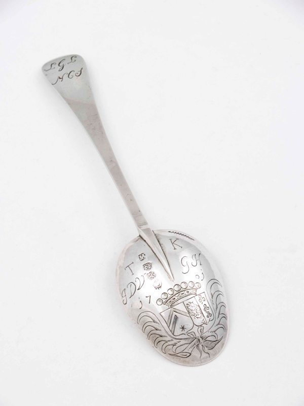 Lepel van wapens en initialen van Gelle Gerryts de Veno en zijn vrouw Geertje Harkes