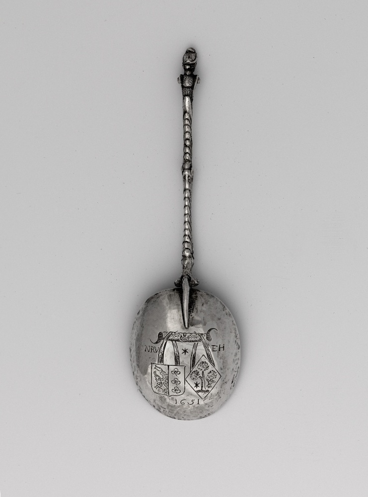 Lepel met alliantiewapens en initialen van Nicolaus Viersma en Eelkjen Haersma