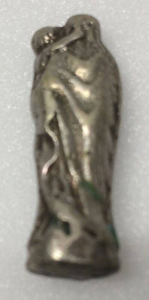 Madonnabeeldje van staande madonna in lang gewaad, met het Christuskind op de linkerarm