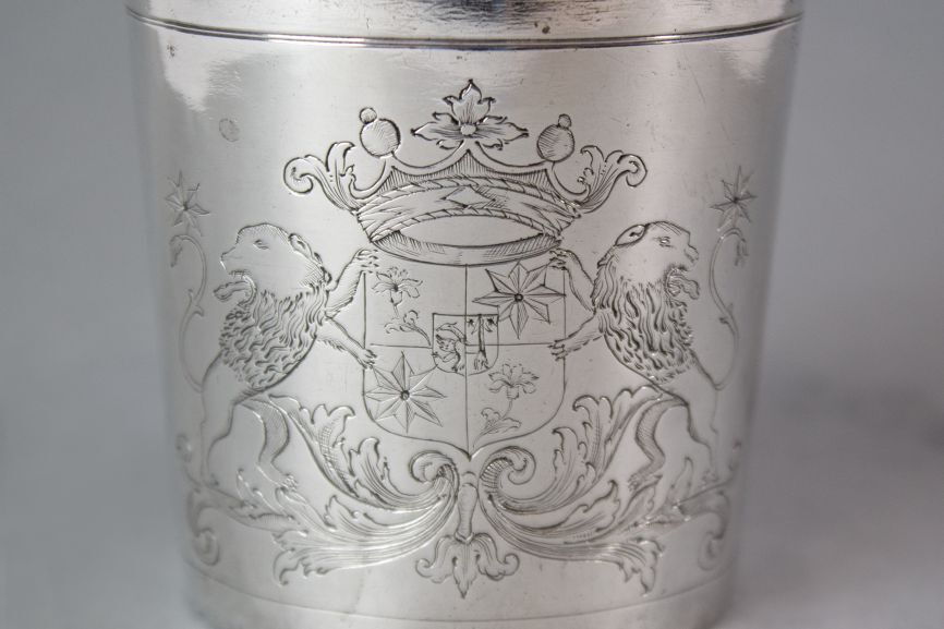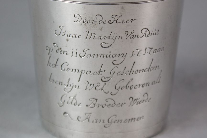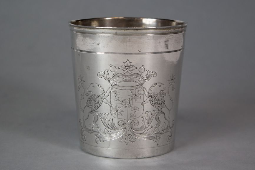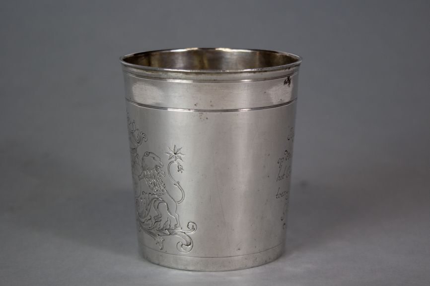 Proefbeker met wapens van Wissema en Adius