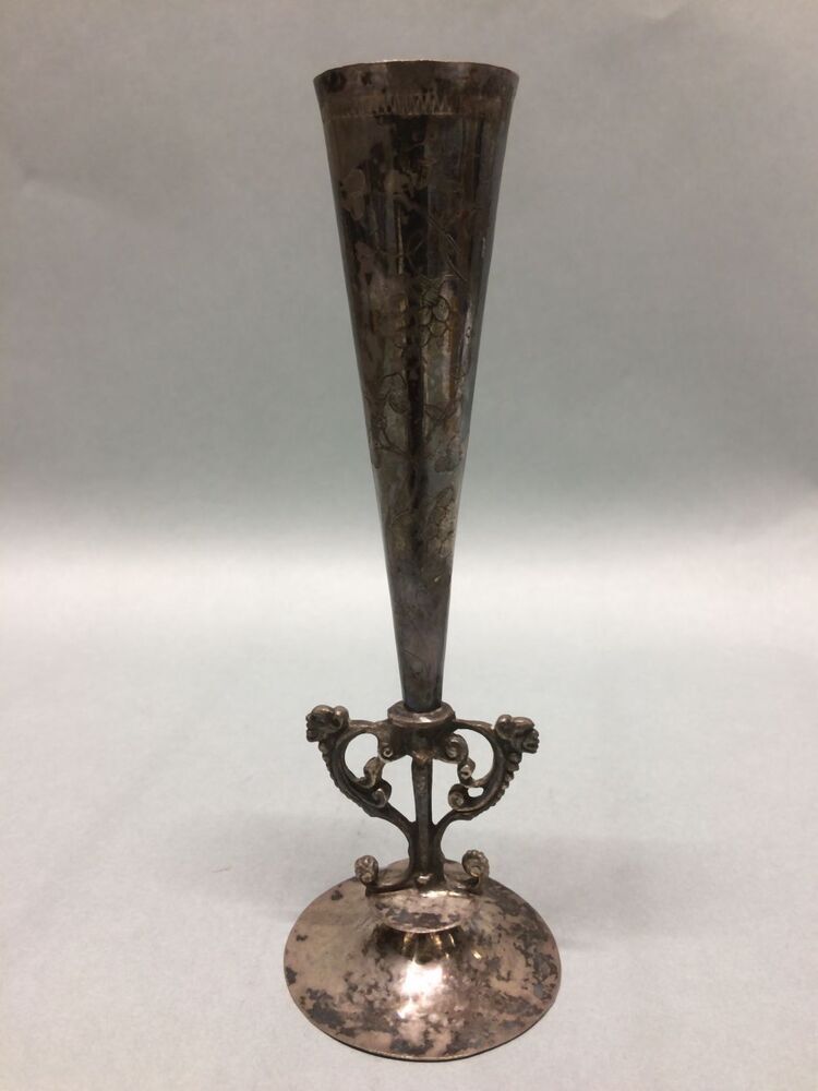 Kelk met op de wand van het vat gegraveerd twee verticale S-vormige druivenranken