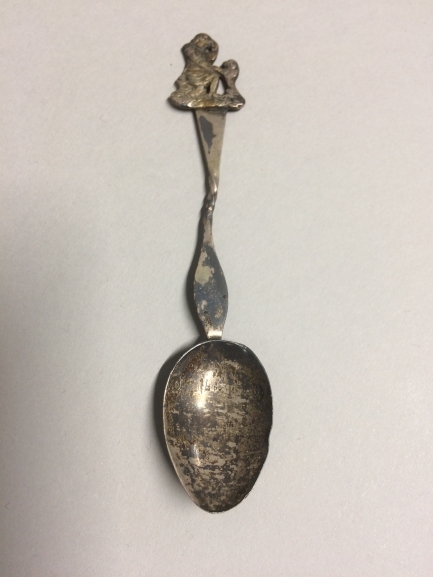 Theelepeltje met een afbeelding van een zittend kind, spelend met een hondje