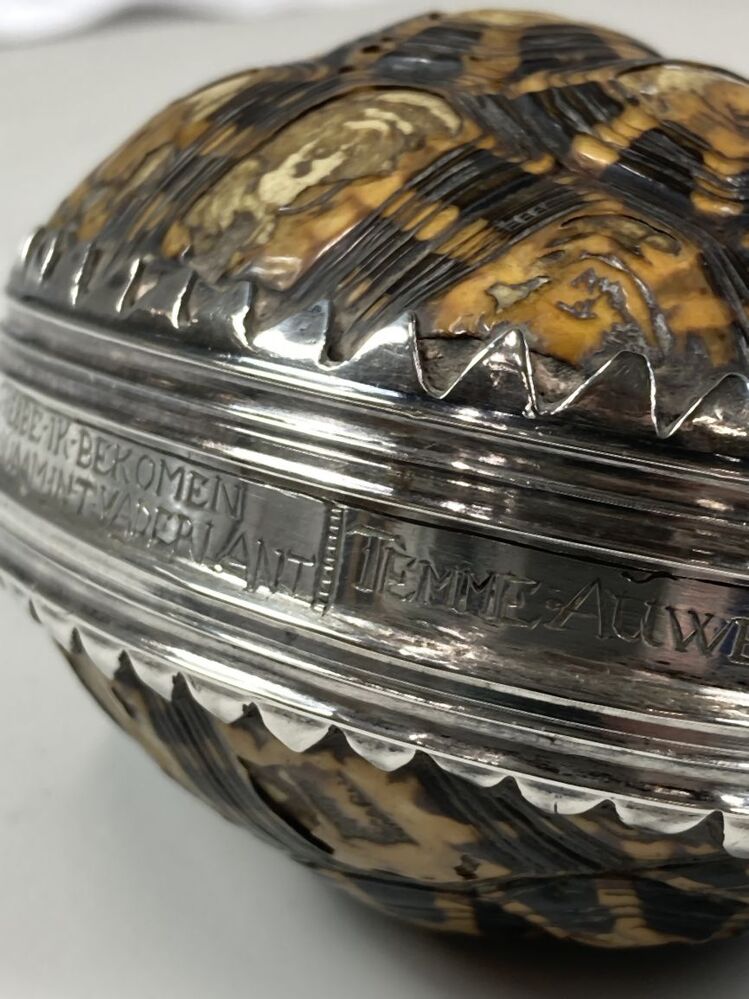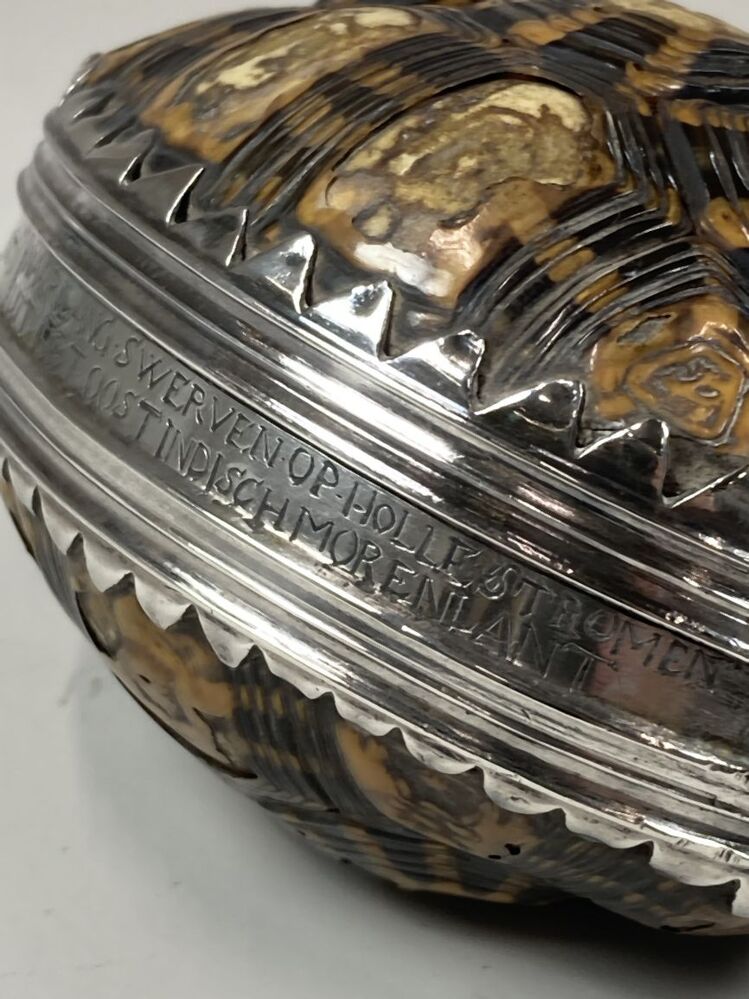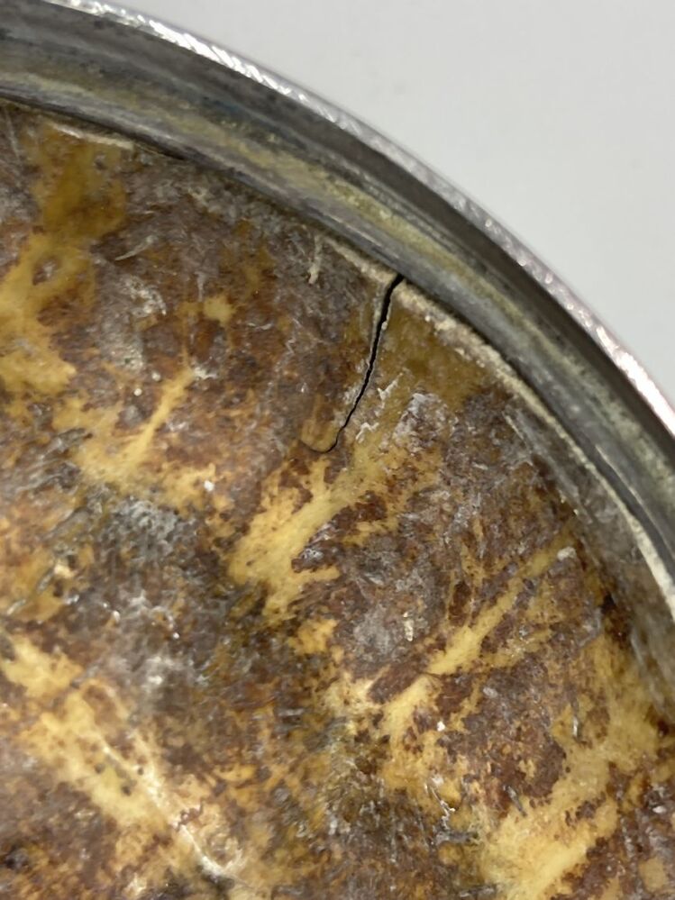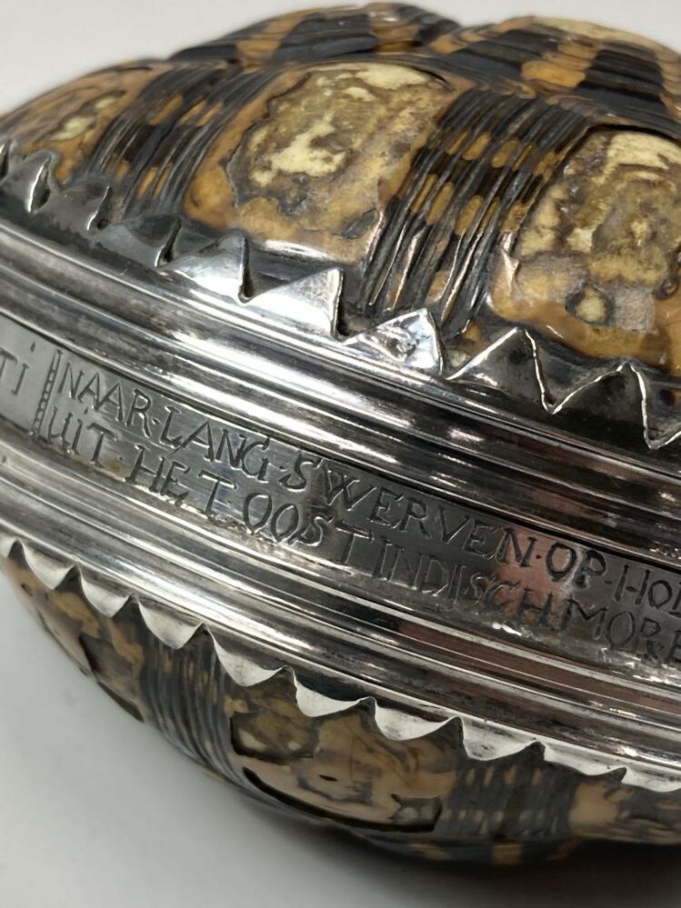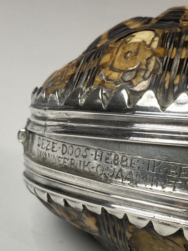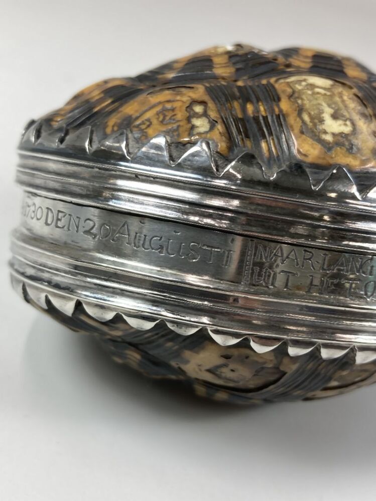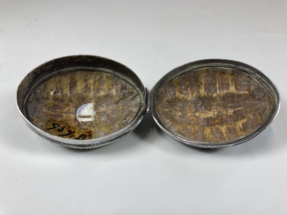 Snuifdoos of tabaksdoos met tekst op deksel; TEMME. AUWES SEKEMA. 1730 DEN . 20. AUGUSTI