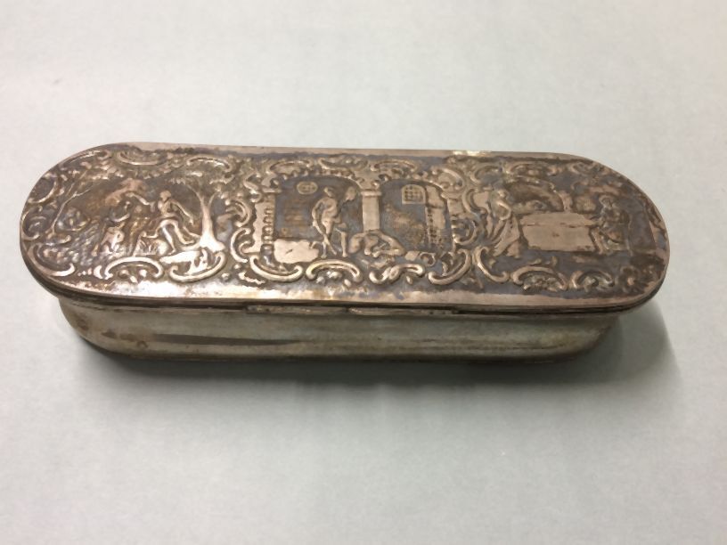 Tabaksdoos met op de deksel o.a. de doop van Christus
