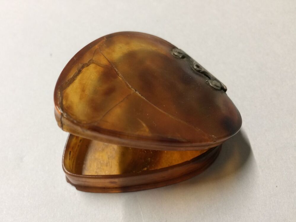 Hartvormig bruin doosje van schildpad met zilveren scharniertje