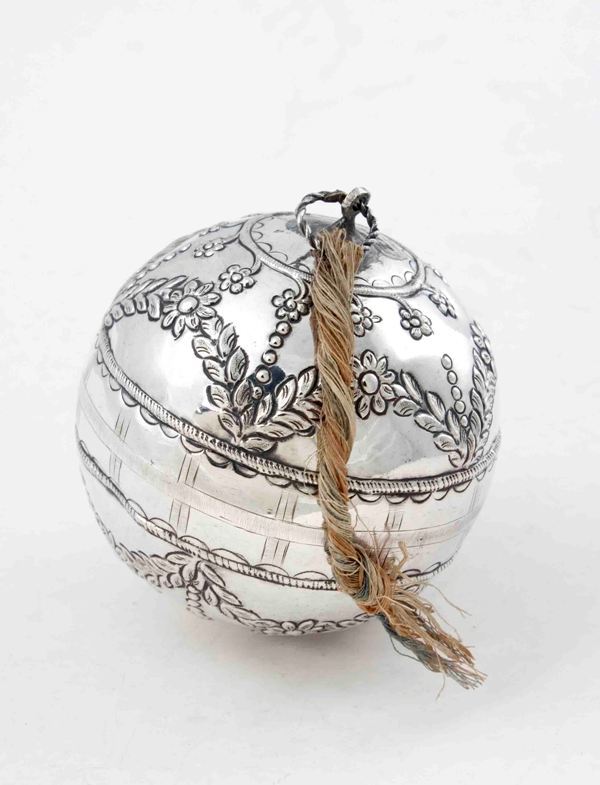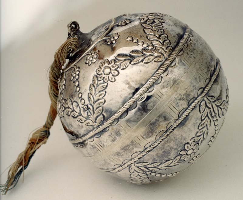 Zilveren kaatsbal met gedreven ornament
