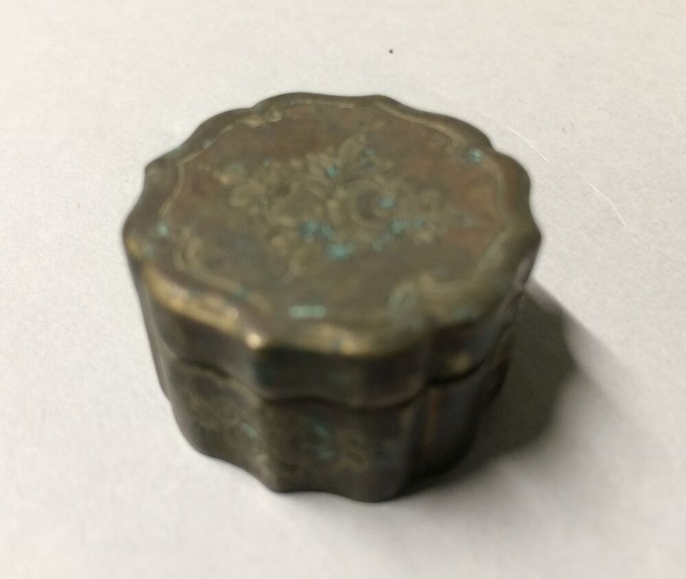 Loddereindoosje accoladevormig van bovenaf gezien met twee roosjes met blad op het deksel