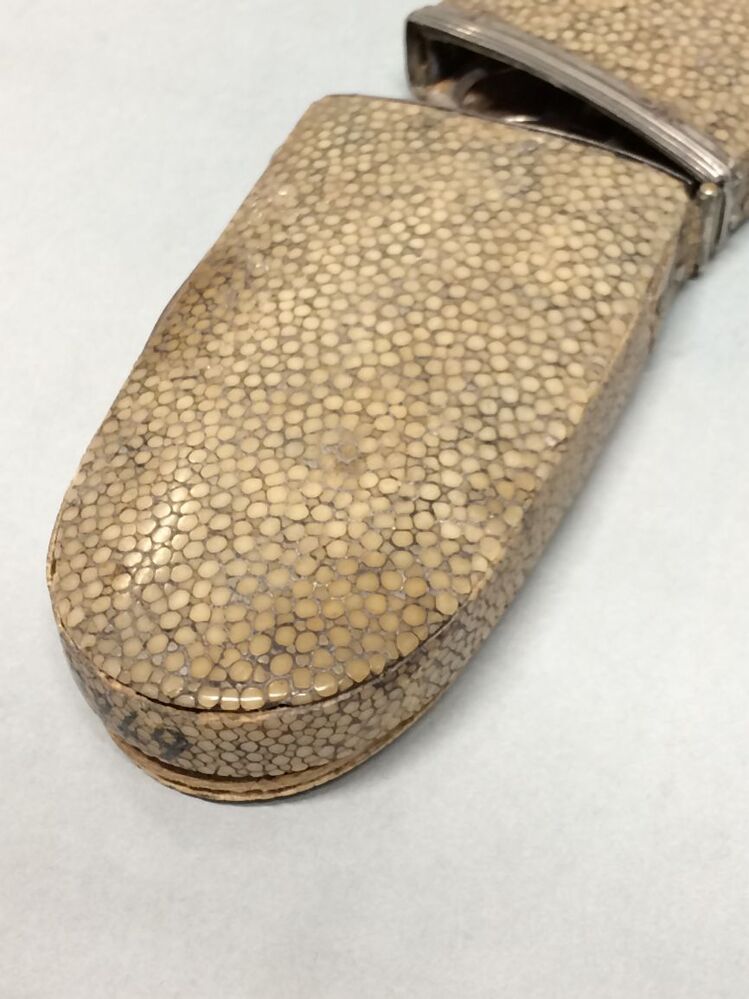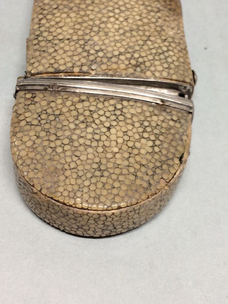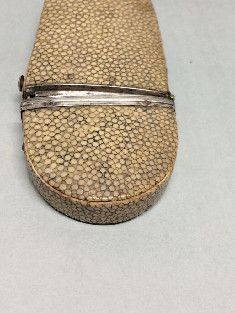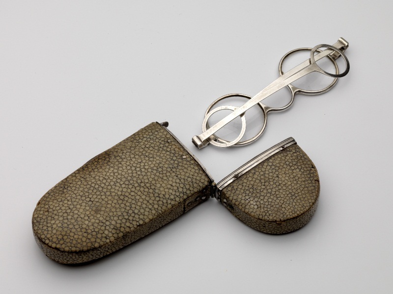 Doosjes van verschillende vorm en materiaal die voornamelijk zijn bedoeld voor het bewaren van een bril. Ze kunnen vrij decoratief zijn en hangen soms aan een ketting, zodat ze op de persoon zelf kunnen worden gedragen. (AAT-Ned) https://data.cultureelerfgoed.nl/term/id/cht/d00e94d8-20c1-4a5c-8c39-44616beb55d1