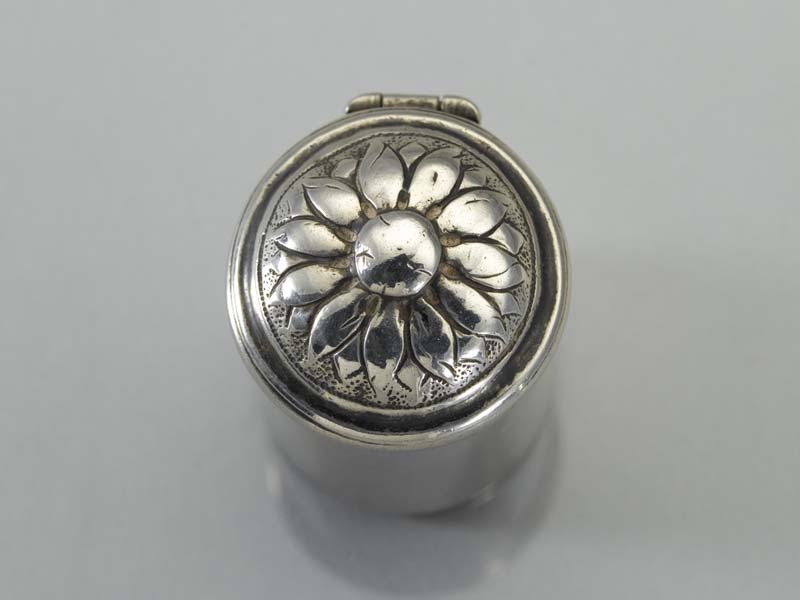 Loddereindoosje op deksel zonnebloem op gegranuleerde grond