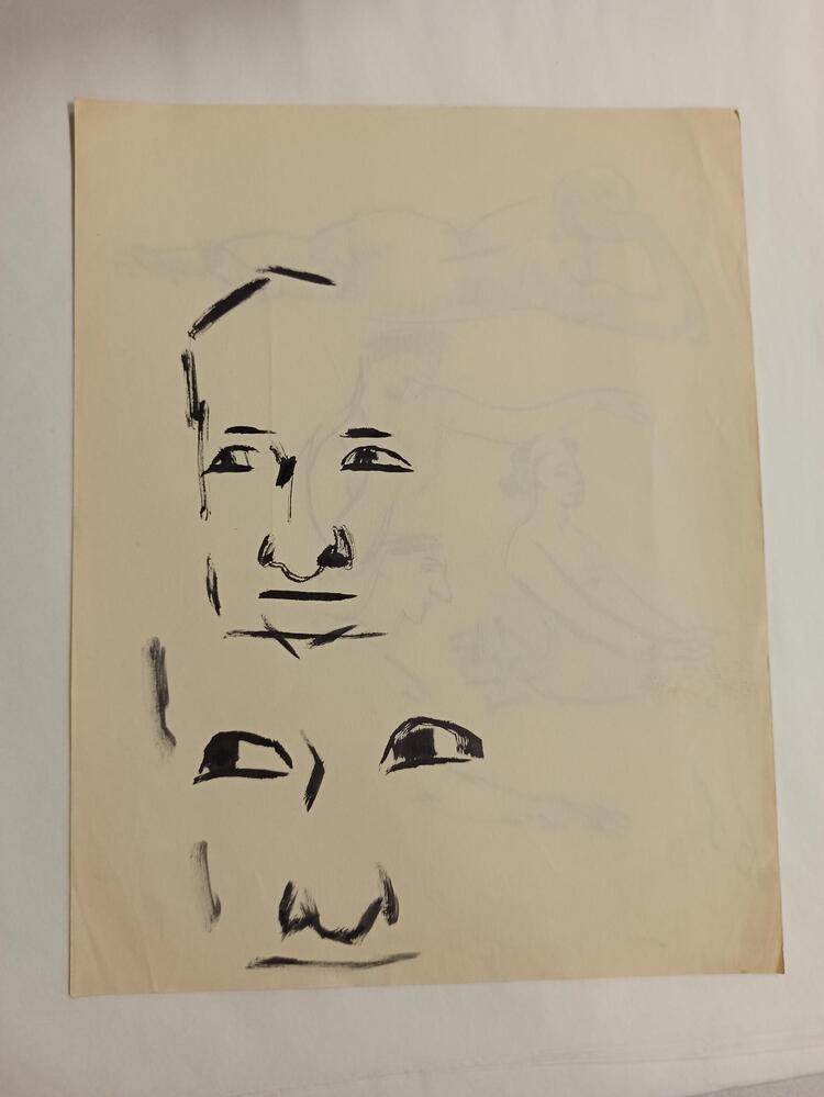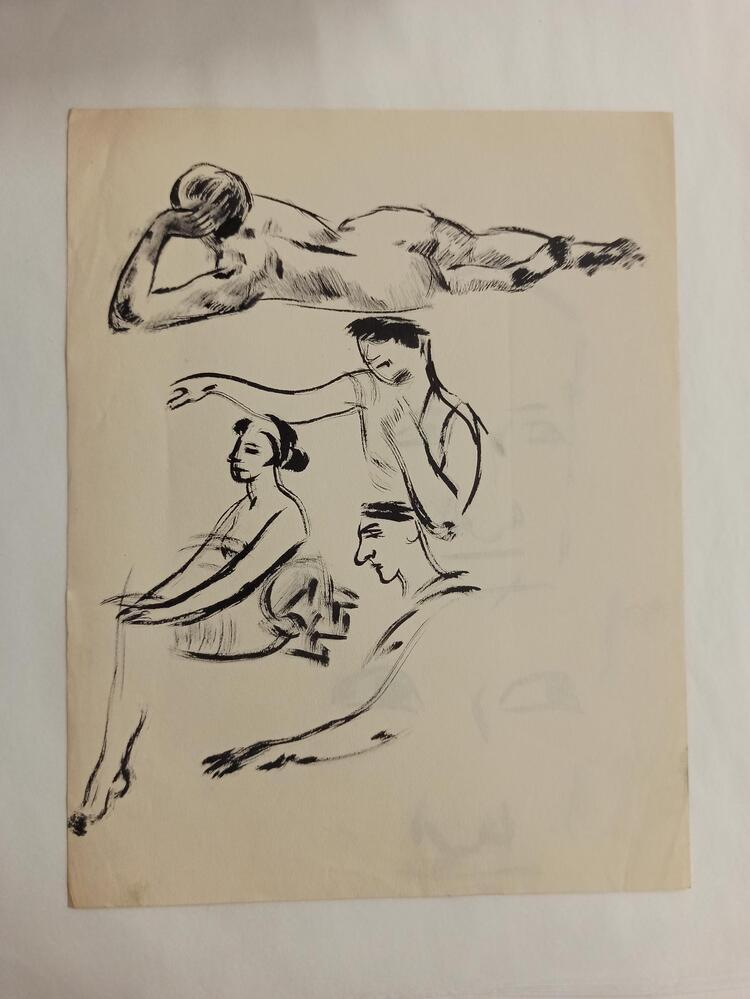 De beide kanten van het papier zijn gebruikt. Op de ene zijde zijn verschillende vrouwen getekend, waarvan een vrouw naakt ligt met haar rug naar de toeschouwer. Op de andere zijde is de opzet van twee gezichten zichtbaar.