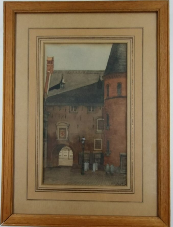 Aquarel met gezicht op de Gevangenpoort vanaf de Plaats gezien. Rechts onder gesigneerd 'Klinkenberg'. Op de stamkaart: in ieder geval voor 1923 geschilderd. Zie: Elsenies V, 1893. 113-128. Maandblad v. Beeldende Kunsten 1924, 176-178. Autiek okt 1979. P. A. Scheen Lexicon Nederlandse Beeldende Kunstenaars 1750-1880 (1881).