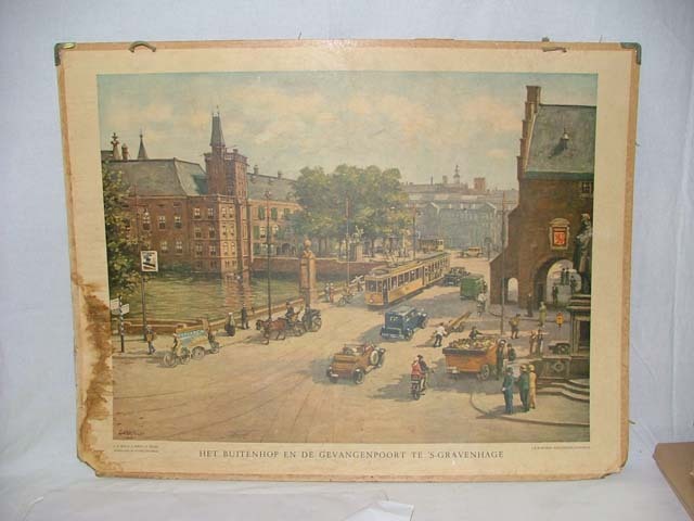 Schoolplaat 'Het Buitenhof en de Gevangenpoort te 's Gravenhage' gezien vanaf de Plaats.
