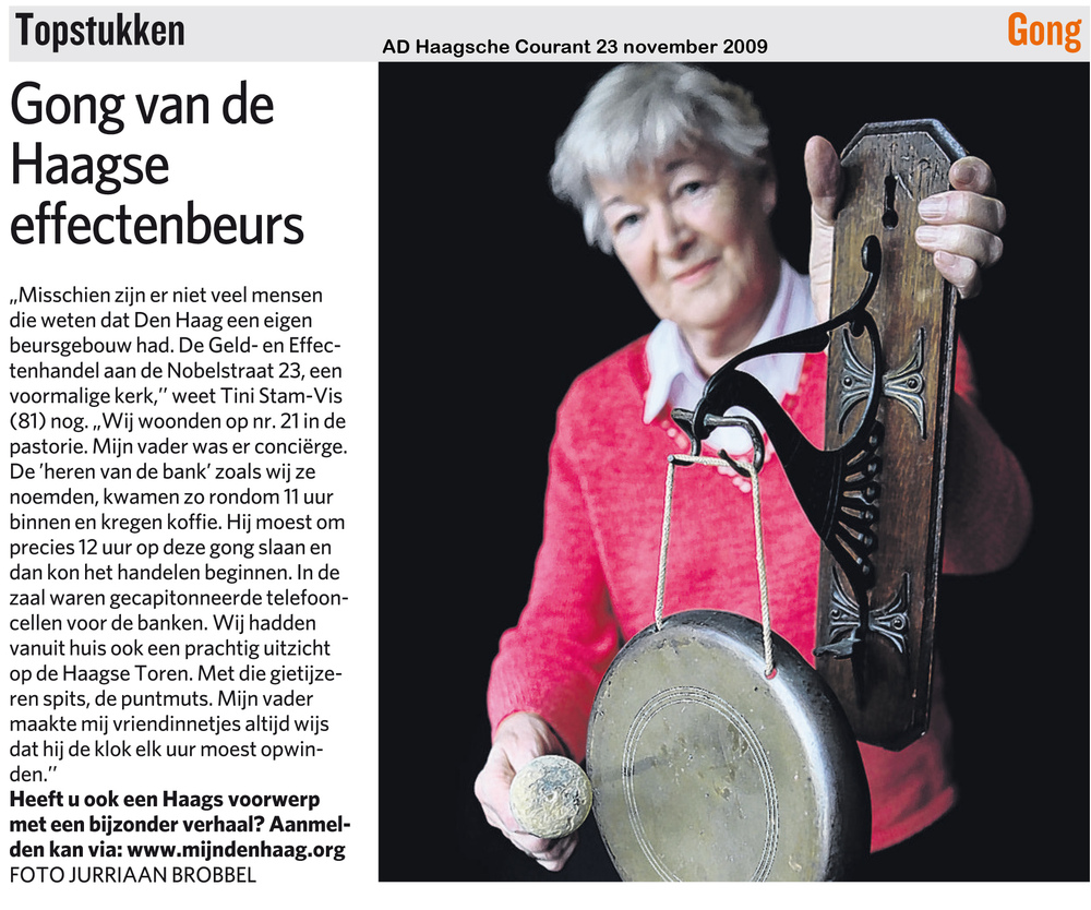 Het topstuk (Haagse geld- en effectenbeursgong) van mevrouw T. Stam-Vis