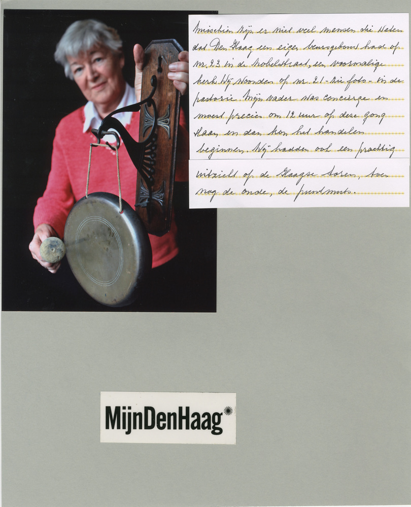 Dit verhaal maakt onderdeel uit van het project MijnDenHaag* Topstukken, waarbij Hagenaars gevraagd wordt naar hun eigen persoonlijke topstuk. Zelfgeschreven tekstbordje: 'Misschien zijn er niet veel mensen die weten dat Den Haag een eigen beursgebouw had op nummer 23 in de Novelstraat, een voormalige kerk. Wij woonden op nummer 21 - zie foto- in de ...