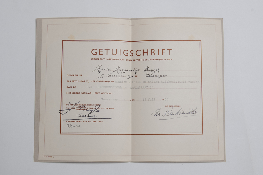 Het topstuk (rapport en getuigschrift) van mevrouw M.M. van Willigen-Bunnik