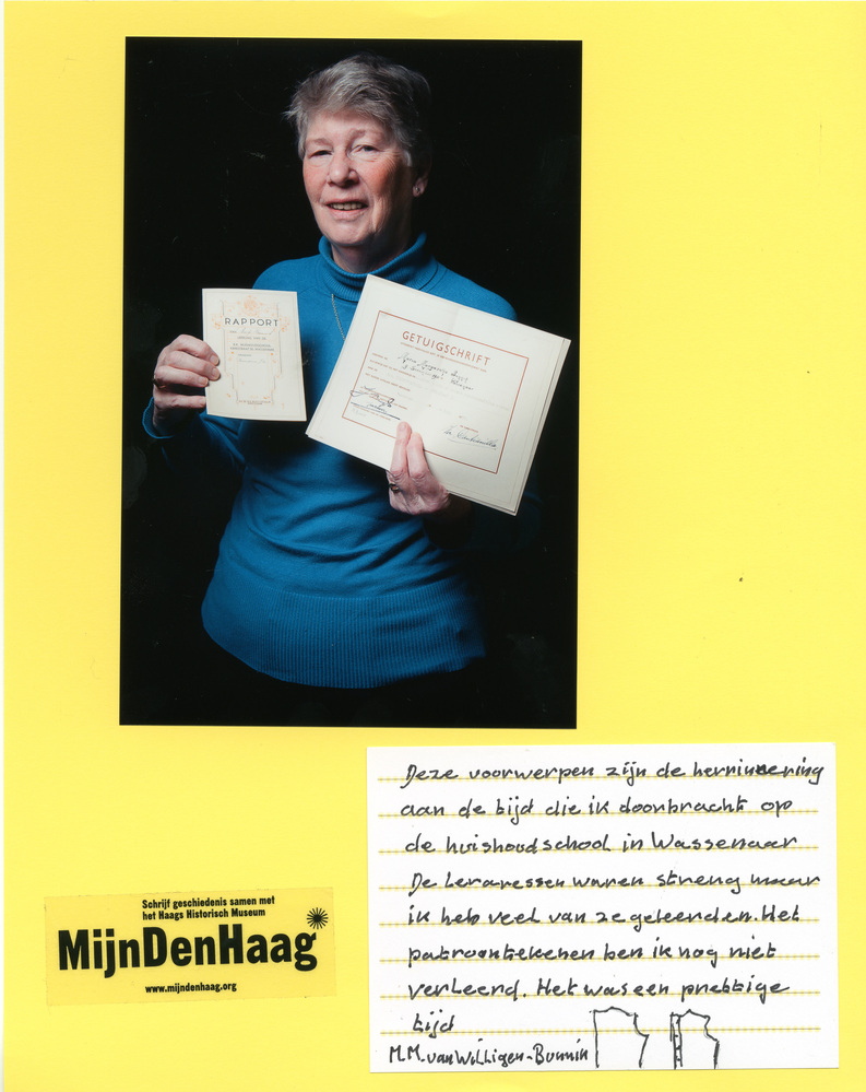 Dit verhaal maakt onderdeel uit van het project MijnDenHaag* Topstukken, waarbij Hagenaars gevraagd wordt naar hun eigen persoonlijke topstuk. 'Deze voorwerpen zijn de herinnering aan de tijd die ik doorbracht op de huishoudschool in Wassenaar. De leraressen waren streng, maar ik heb veel van ze geleerd. Het patroontekenen ben ik nog niet verleerd. Het was ...