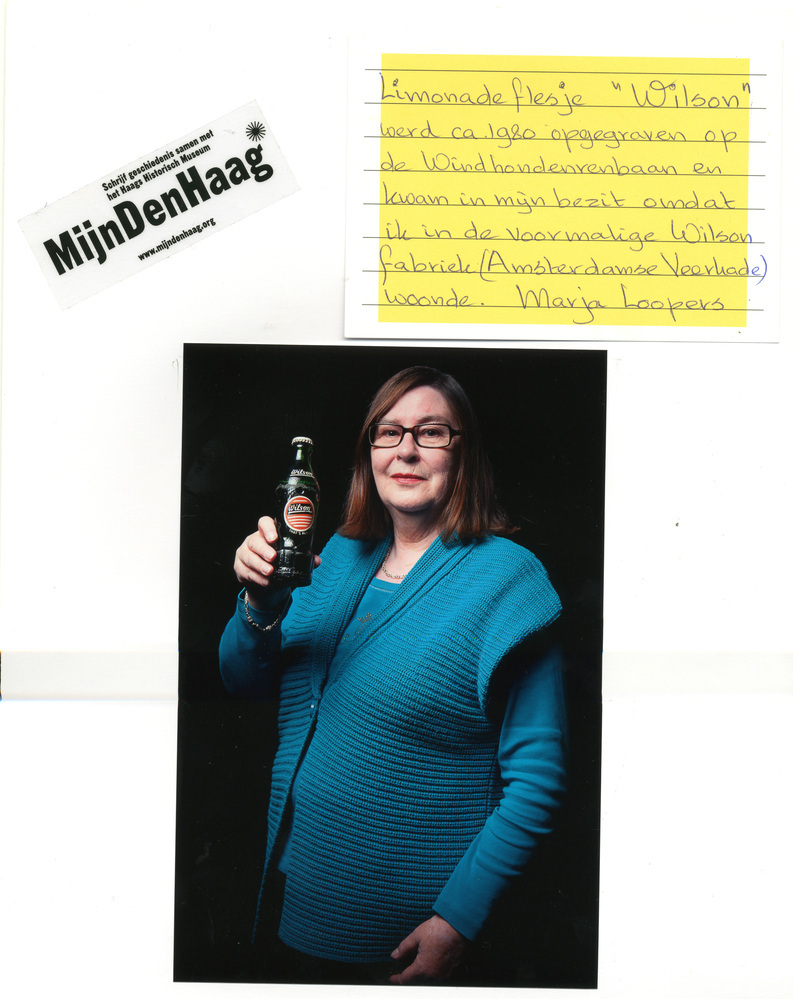 Dit verhaal maakt onderdeel uit van het project MijnDenHaag* Topstukken, waarbij Hagenaars gevraagd wordt naar hun eigen persoonlijke topstuk. 'Dit limonadeflesje van Wilson werd in ca 1980 opgegraven op de Windhondenrenbaan en kwam in mijn bezit omdat ik in de voormalige Wilsonfabriek (Amsterdamse Veerkade) woonde. Marja Loopers'