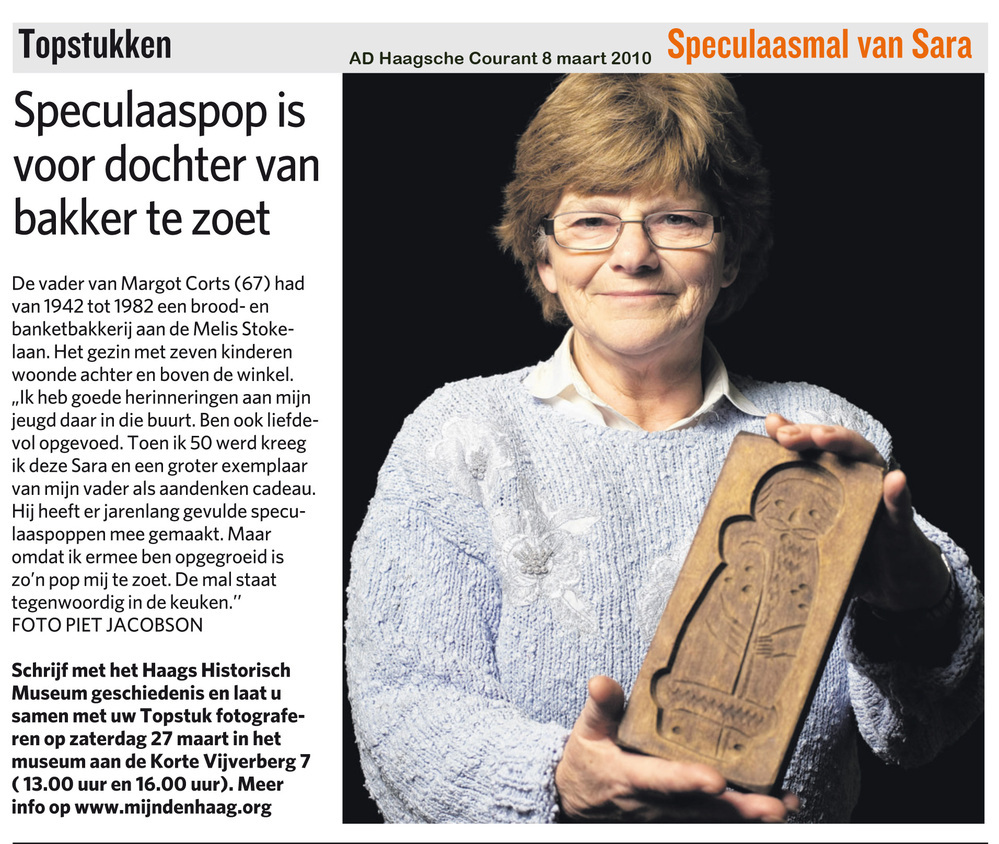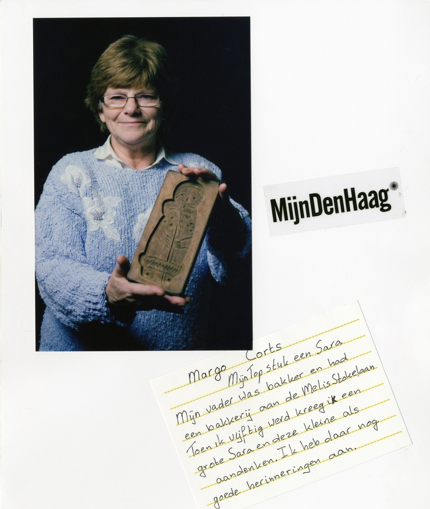 Dit verhaal maakt onderdeel uit van het project MijnDenHaag* Topstukken, waarbij Hagenaars gevraagd wordt naar hun eigen persoonlijke topstuk. 'Mijn topstuk, een Sara. Mijn vader was bakker en had een bakkerij aan de Melis Stokelaan. Toen ik vijftig werd kreeg ik een grote Sara en deze klein als aandenken. Ik heb daar nog goede herinneringen ...
