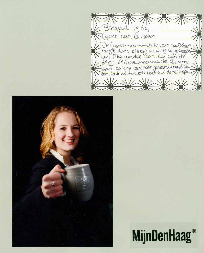 Dit verhaal maakt onderdeel uit van het project MijnDenHaag* Topstukken, waarbij Hagenaars gevraagd wordt naar hun eigen persoonlijke topstuk. 'Bierpul 1964 Lycke van Leusden De Lustrumcommissie van 2008/2009 heeft deze bierpul uit 1964 gekregen van Mac van de Laan, lid van de 6e en 16e lustrumcommissie. Al meer dan 50 jaar een zeer gerespecteerd lid. ...