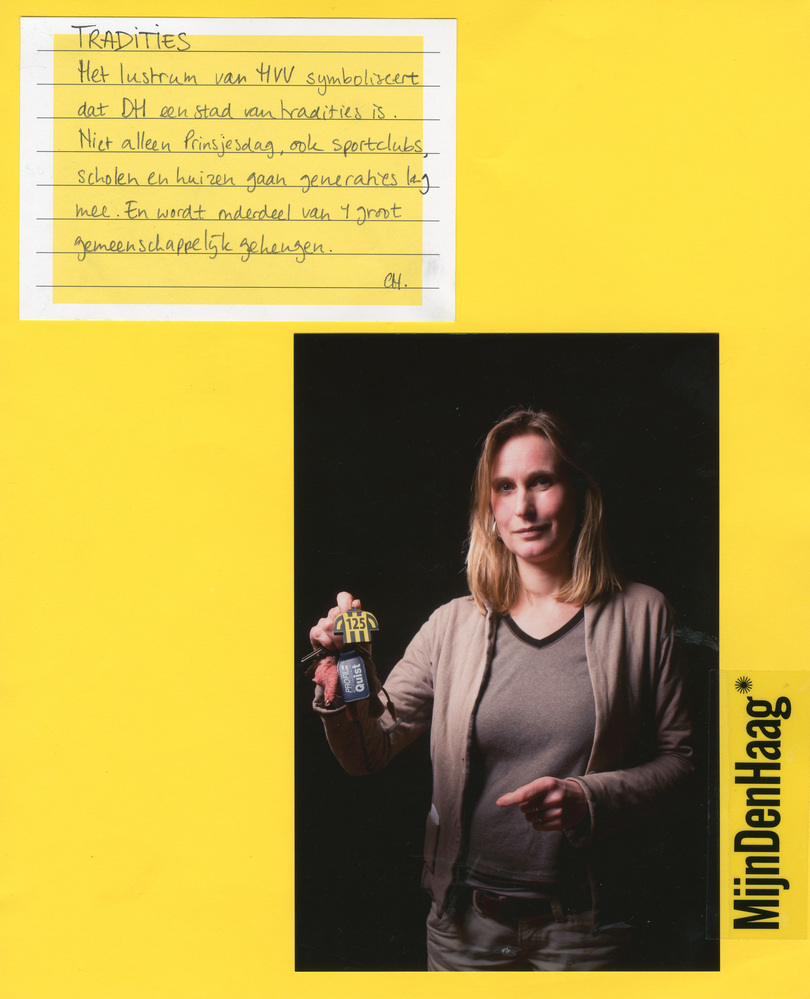 Dit verhaal maakt onderdeel uit van het project MijnDenHaag* Topstukken, waarbij Hagenaars gevraagd wordt naar hun eigen persoonlijke topstuk. 'Het lustrum van HVV symboliseert dat Den Haag een stad van tradities is. Niet alleen Prinsjesdag, ook sportclubs, scholen en huizen gaan generaties lang mee. En wordt onderdeel van één groot gemeenschappelijk geheugen. Christy Hupkes'