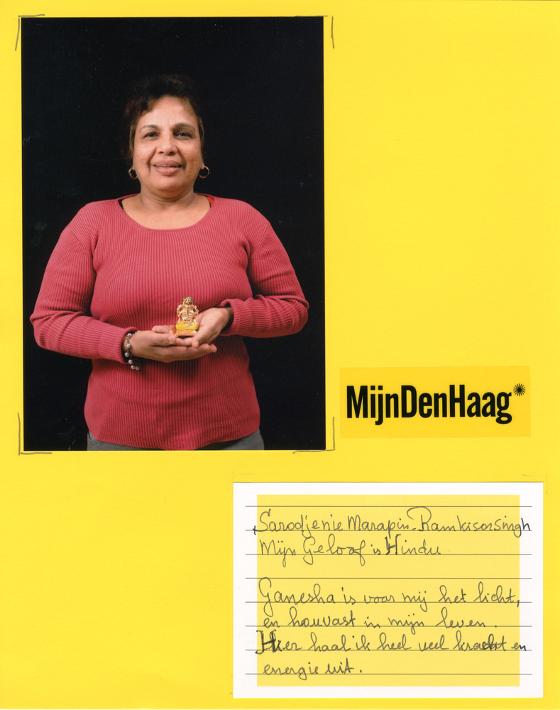 Dit verhaal maakt onderdeel uit van het project MijnDenHaag* Topstukken, waarbij Hagenaars gevraagd wordt naar hun eigen persoonlijke topstuk. 'Ganesha is voor mij het licht en houvast in mijn leven. Hier haal ik heel veel kracht en energie uit. Sarodjenie Marapin Ramkisorsingh'