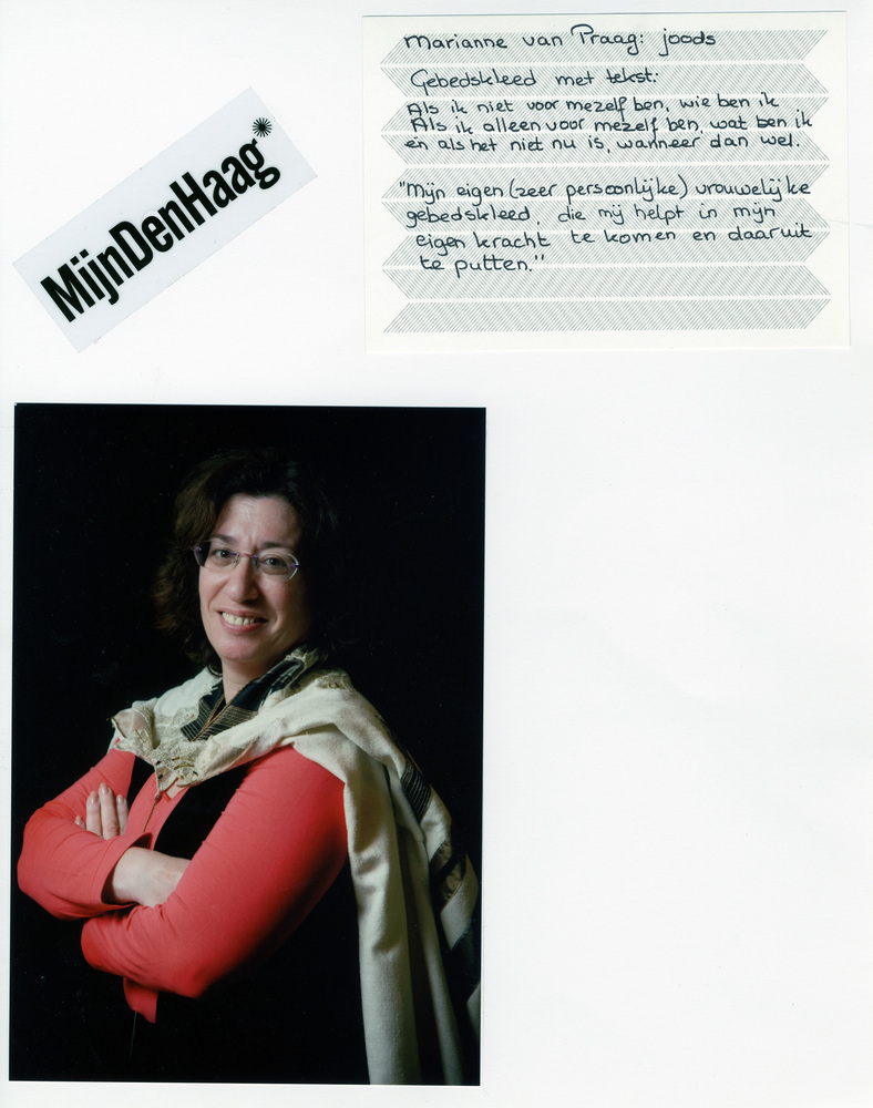 Dit verhaal maakt onderdeel uit van het project MijnDenHaag* Topstukken, waarbij Hagenaars gevraagd wordt naar hun eigen persoonlijke topstuk. 'Als ik niet voor mezelf ben, wie ben ik als ik alleen voor mezelf ben wat ben ik en als het niet nu is, wanneer dan wel. Mijn eigen zeer persoonlijke vrouwelijke gebedskleed, dat mij helpt ...