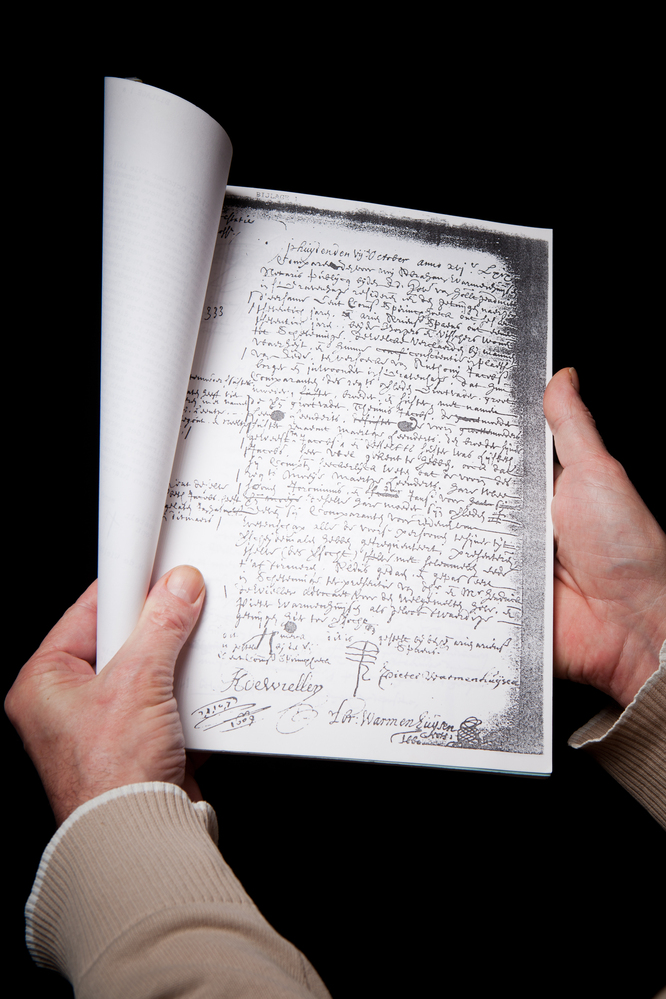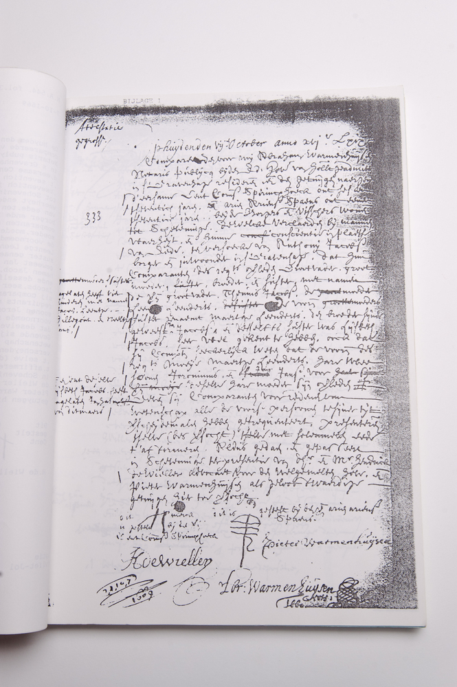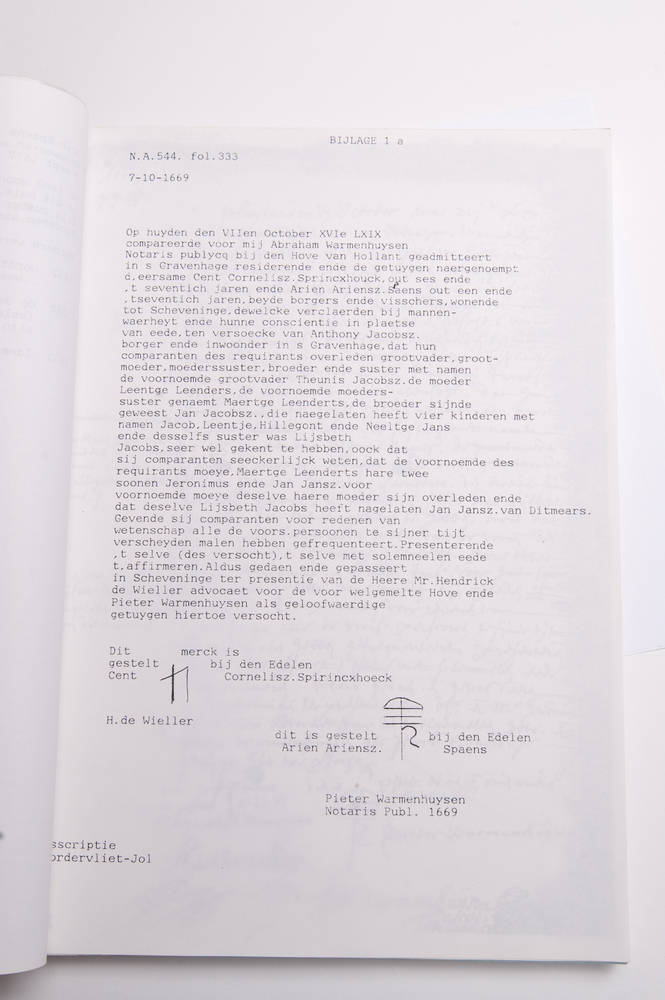 Het topstuk (kopie van boek over Scheveningen met handtekening van zijn voorvader ca 1600) van Leonardo Spaans
