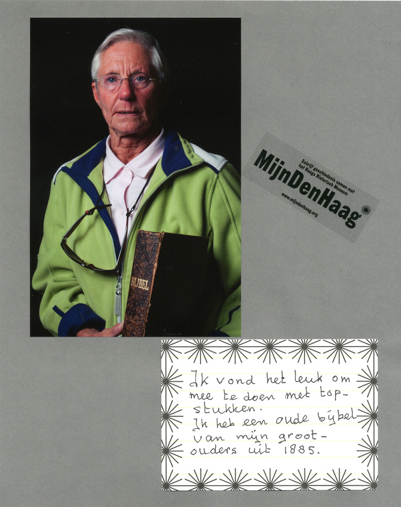 Dit verhaal maakt onderdeel uit van het project MijnDenHaag* Topstukken, waarbij Hagenaars gevraagd wordt naar hun eigen persoonlijke topstuk. 'Ik vond het leuk om mee te doen met Topstukken. Ik heb een oude bijbel van mijn grootouders uit 1885. Mevrouw J. Farla-Rietveld'