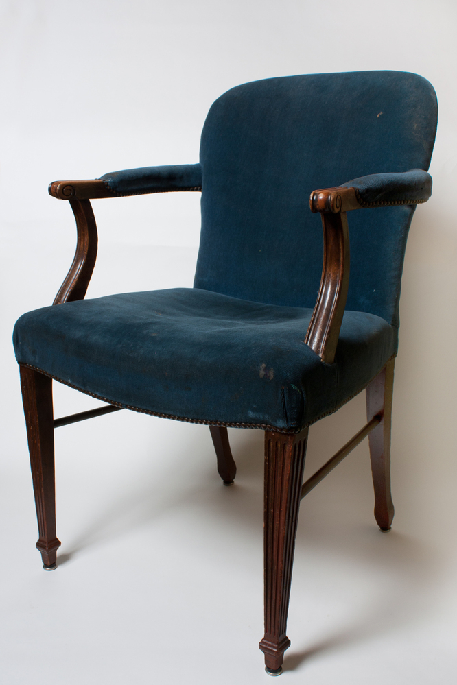 Het topstuk (Blauw fauteuiltje P.L. Wahnars La Haye meubles antiques et modernes) van Christine Laheij