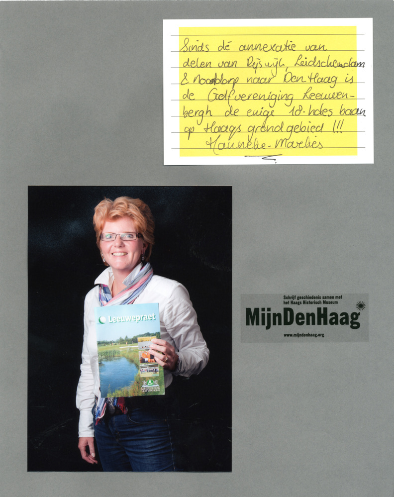 Dit verhaal maakt onderdeel uit van het project MijnDenHaag* Topstukken, waarbij Hagenaars gevraagd wordt naar hun eigen persoonlijke topstuk. 'Sinds de annexatie van delen van Rijswijk, Leidschendam en Nootdorp naar Den Haag is de Golfvereniging Leeuwenbergh de enige 18 holes baan op Haags grondgebied!!! Hanneke-Marlies Verwer-Meinen'