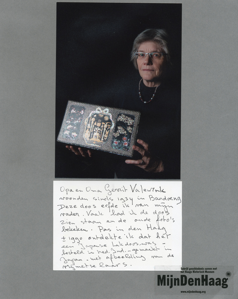 Dit verhaal maakt onderdeel uit van het project MijnDenHaag* Topstukken, waarbij Hagenaars gevraagd wordt naar hun eigen persoonlijke topstuk. 'Opa en Oma Gerrit Valewink woonden sinds 1934 in Bandoeng. Deze doos erfde ik van mijn vader. Vaak had ik de doos zien staan en de oude foto's bekeken. Pas in Den Haag ongeveer rond 1990 ...