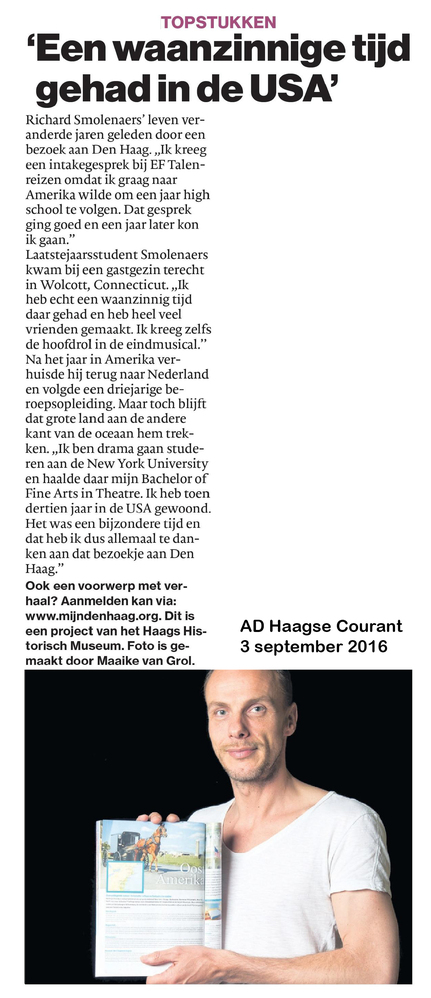 Dit verhaal maakt onderdeel uit van het project MijnDenHaag* Topstukken, waarbij Hagenaars gevraagd wordt naar hun eigen persoonlijke topstuk. 'Lang geleden kwam ik naar Den Haag voor een interview met EF Talenreizen. Het was een intake gesprek omdat ik als uitwisselingsstudent naar Amerika wilde. Het gesprek is goed verlopen en dat bezoek aan Den Haag ...