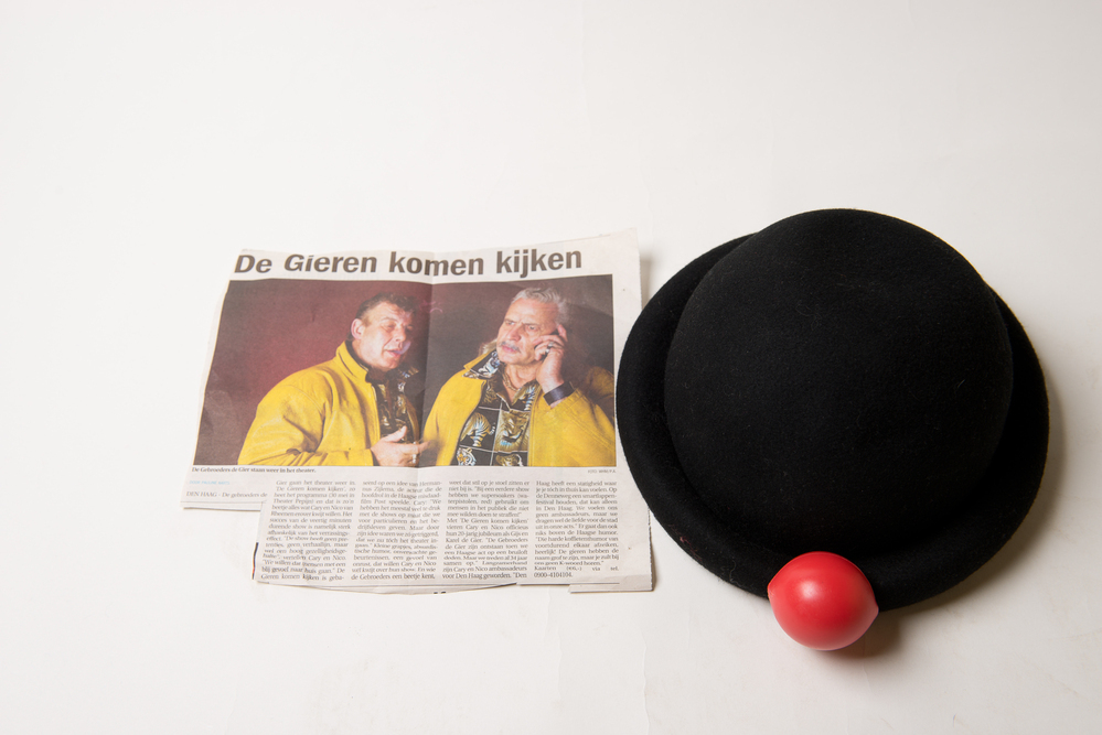 Het topstuk (hoed, clownsneus en foto) van Nico en Cary van Rheenen