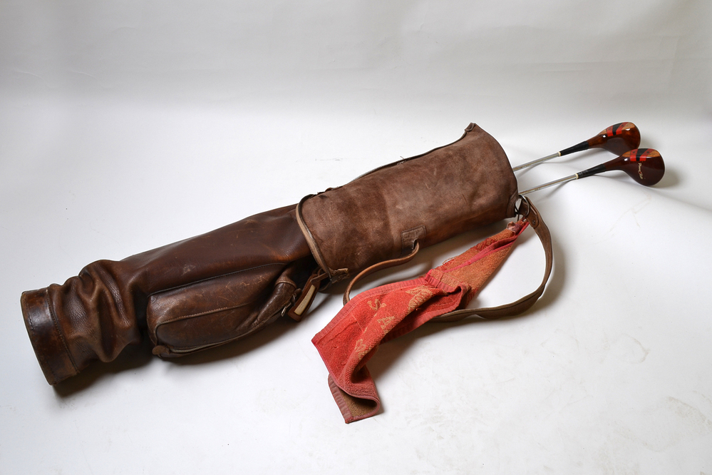 Het topstuk (Golftas ca 1920 en 2 golfclubs hout (4 en 3)) van Madeleine van den Houten
