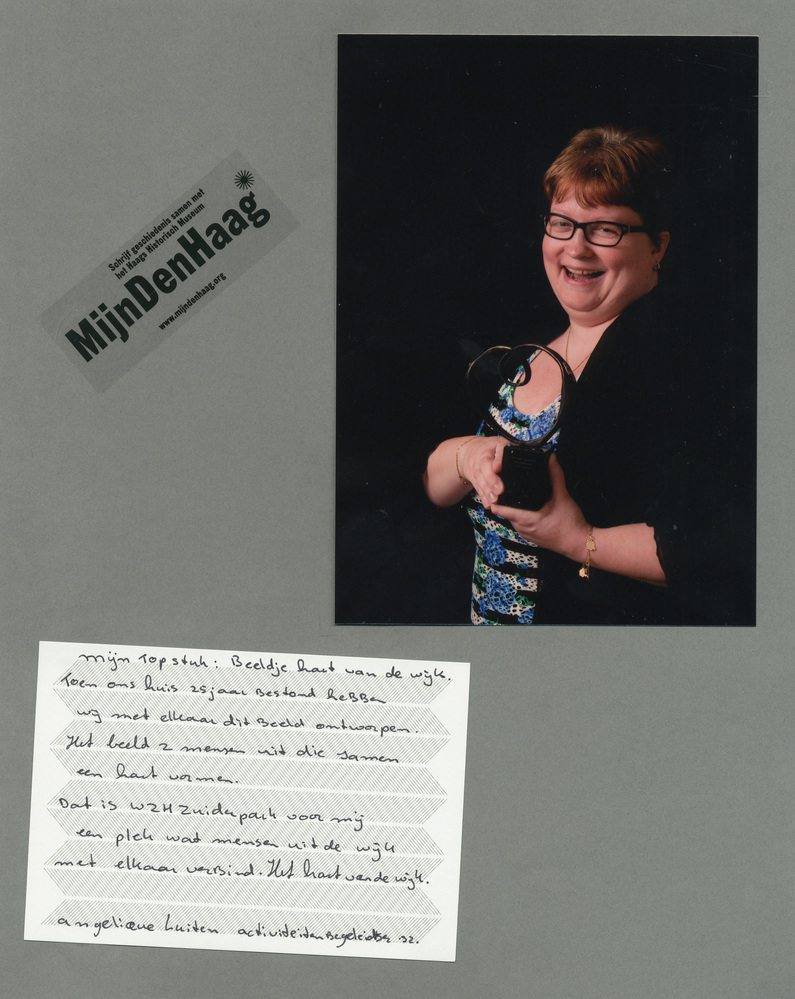 Dit verhaal maakt onderdeel uit van het project MijnDenHaag* Topstukken, waarbij Hagenaars gevraagd wordt naar hun eigen persoonlijke topstuk. 'Mijn topstuk: Beeldje hart van de wijk Toen ons huis 25 jaar bestond, hebben wij met elkaar dit beeld ontworpen. Het beeldt twee mensen uit die samen een hart vormen. Dat is WZH Zuiderpark voor mij, ...