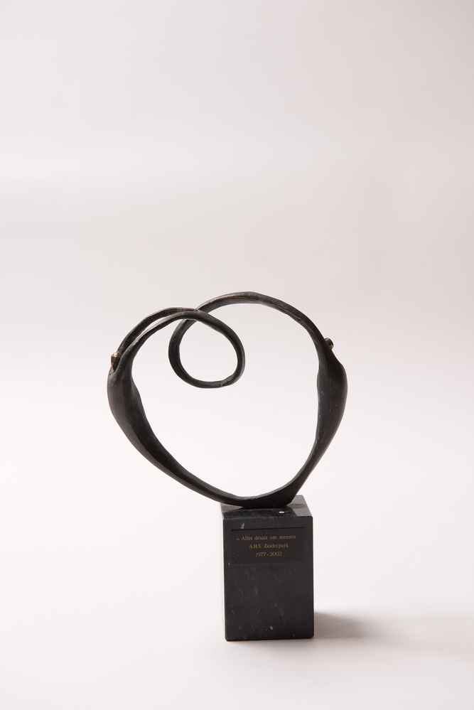 Het topstuk (beeldje 'Hart van de wijk' ter ere van 25 jarig bestaan van WZH Zuiderpark) van Angelique Luiten