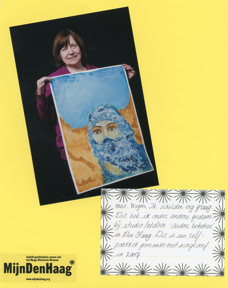 Dit verhaal maakt onderdeel uit van het project MijnDenHaag* Topstukken, waarbij Hagenaars gevraagd wordt naar hun eigen persoonlijke topstuk. 'Ik schilder erg graag. Dit heb ik onder andere gedaan bij studio/atelier 'Anders bekeken' in Den Haag. Dit is een zelfportret gemaakt met acrylverf in 2007. '