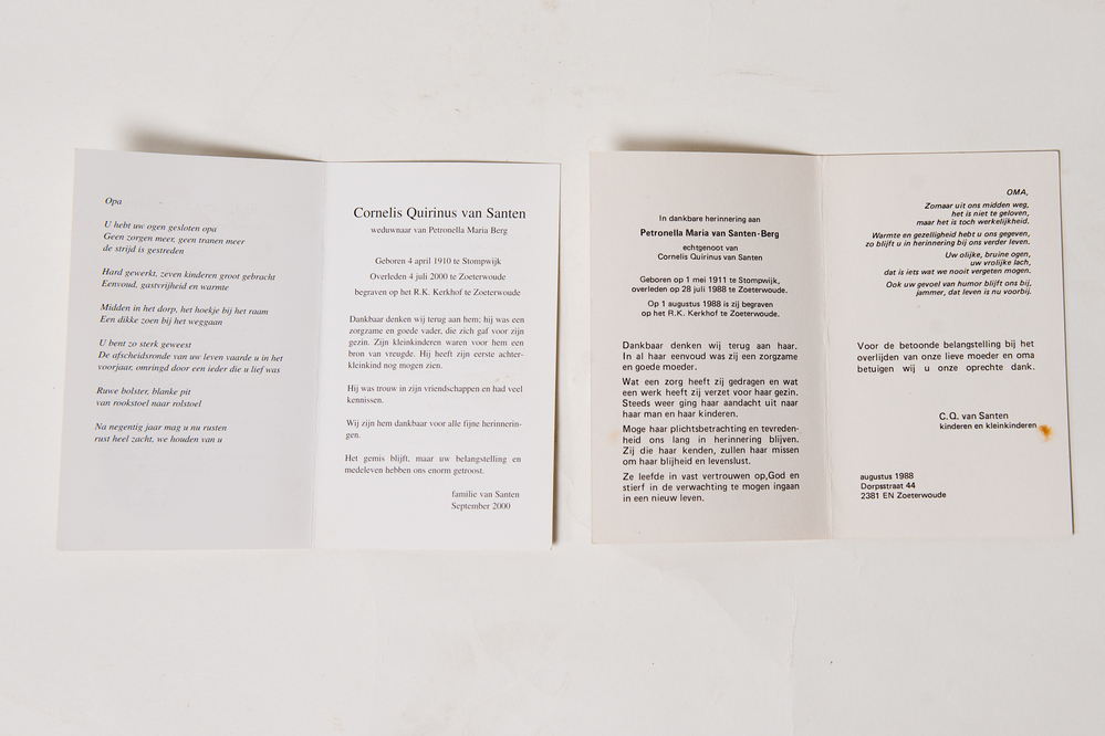 Het topstuk (bidprentjes van haar opvanggezin) van mevrouw H.Th. Breugel-Knijnenburg