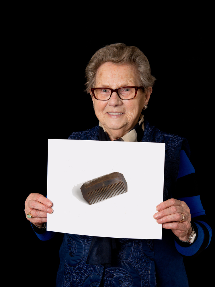 Dit verhaal maakt onderdeel uit van het project MijnDenHaag* Topstukken, waarbij Hagenaars gevraagd wordt naar hun eigen persoonlijke topstuk. 'Mevr. van Leeuwen-Mijnders Ik sta op de foto met een netenkam. Omdat ik tijdens mijn verblijf als het ware een neet was met de neten. Arm, berooid en eenzaam.'