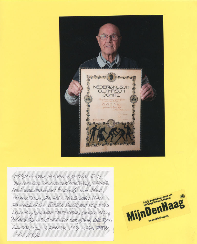 Dit verhaal maakt onderdeel uit van het project MijnDenHaag* Topstukken, waarbij Hagenaars gevraagd wordt naar hun eigen persoonlijke topstuk. 'Dhr. Vis Diploma N.O.C. Mijn vader, agent van politie Den Haag, behaalde de gouden medaille zijnde het “Eerteken 1e graad” van het Ned. Olymp. Com., na het afleggen van zware N.O.C. eisen. De prestatie was van ...