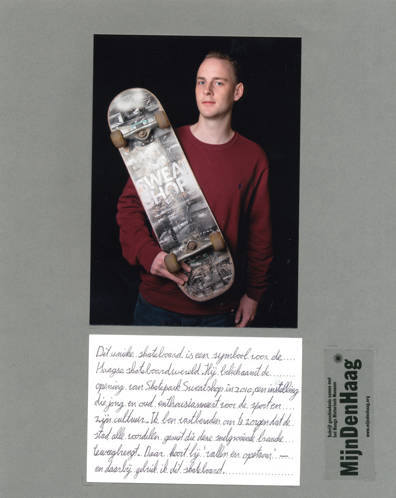 Dit verhaal maakt onderdeel uit van het project MijnDenHaag* Topstukken, waarbij Hagenaars gevraagd wordt naar hun eigen persoonlijke topstuk. 'Dit unieke skateboard is een symbool voor de skateboardwereld. Hij belichaamt de opening van Skatepark Sweatshop in 2010, een instelling die jong en oud enthousiasmeert voor de sport en zijn cultuur. In ben vastberaden om te ...