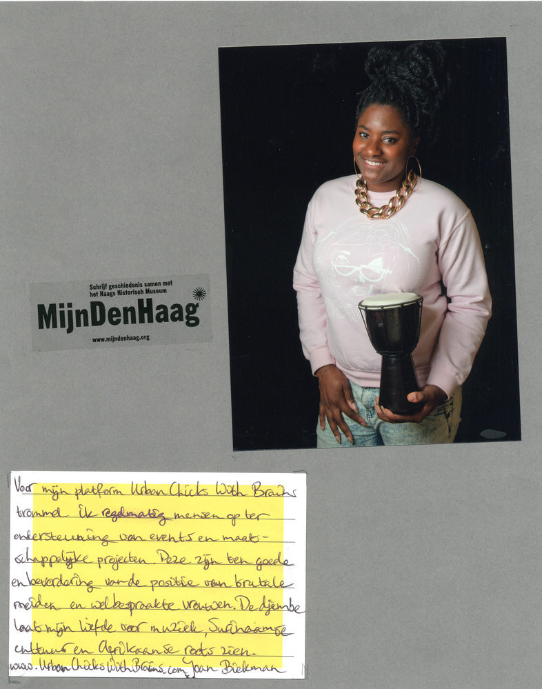Dit verhaal maakt onderdeel uit van het project MijnDenHaag* Topstukken, waarbij Hagenaars gevraagd wordt naar hun eigen persoonlijke topstuk. 'Voor mijn platform Urban Chicks with Brains trommel ik regelmatig mensen op ter ondersteuning van events en maatschappelijke projecten. Deze zijn ten goede van en bevordering van de positie van brutale meiden en welbespraakte vrouwen. De ...