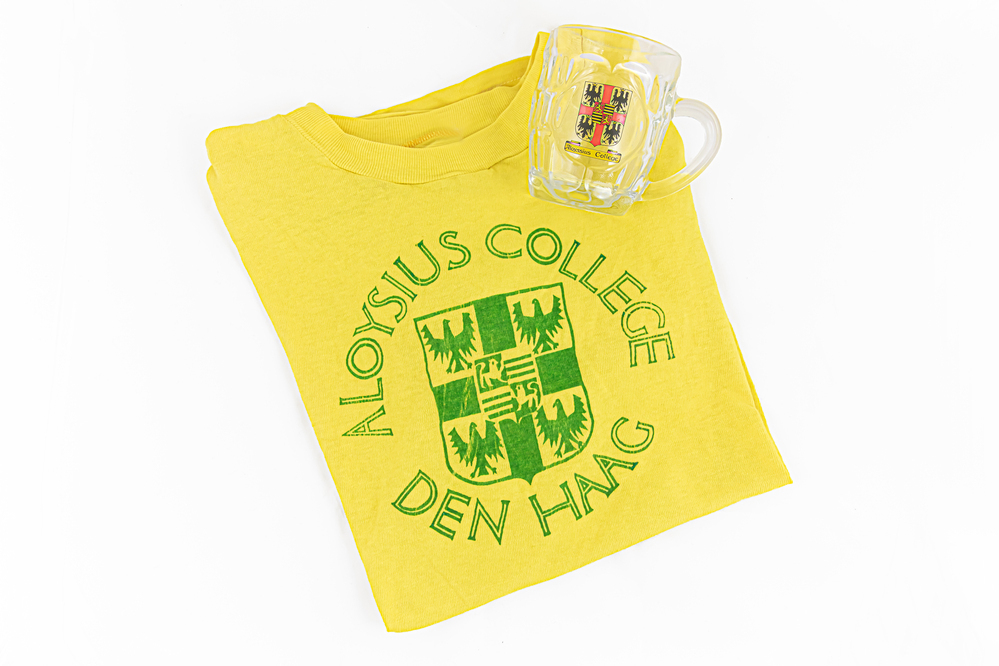 Het topstuk (Aloysius College shirt en bierpul) van Frans Fox