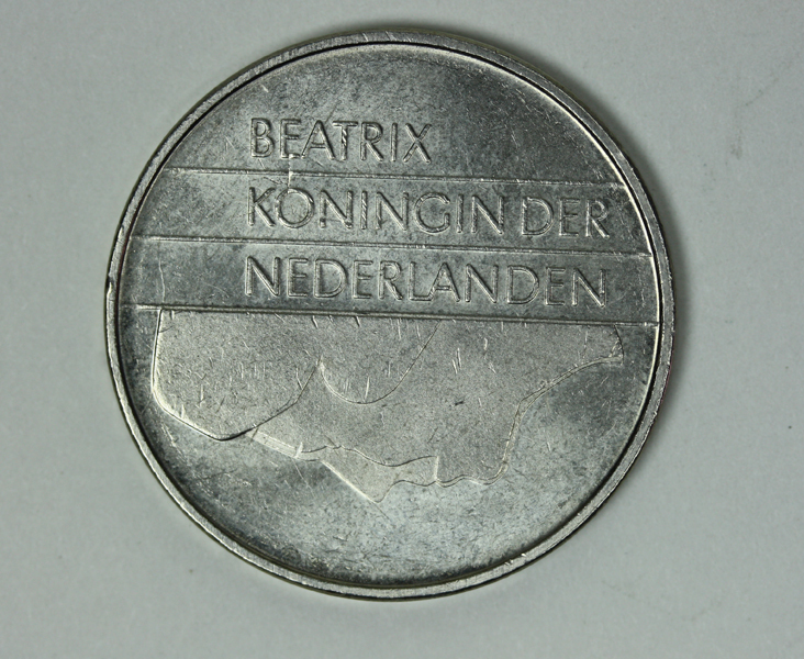 Rijksdaalder. Op de voorzijde een half portret van koningin Beatrix met naar links gewend gezicht. Op de keerzijde de waarde en het jaartal.