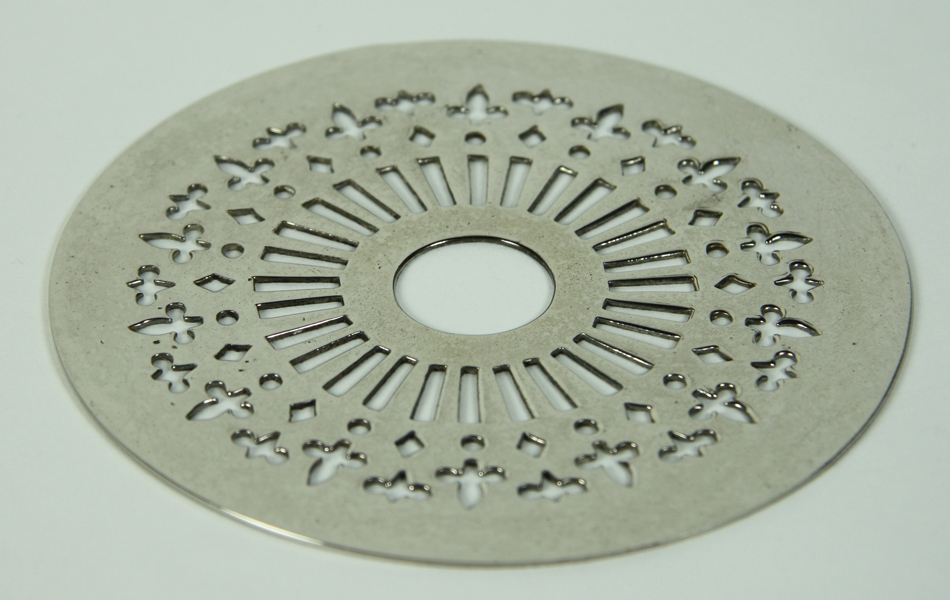 Plaat van theelicht, rond, opengewerkt, zilverkleurig.