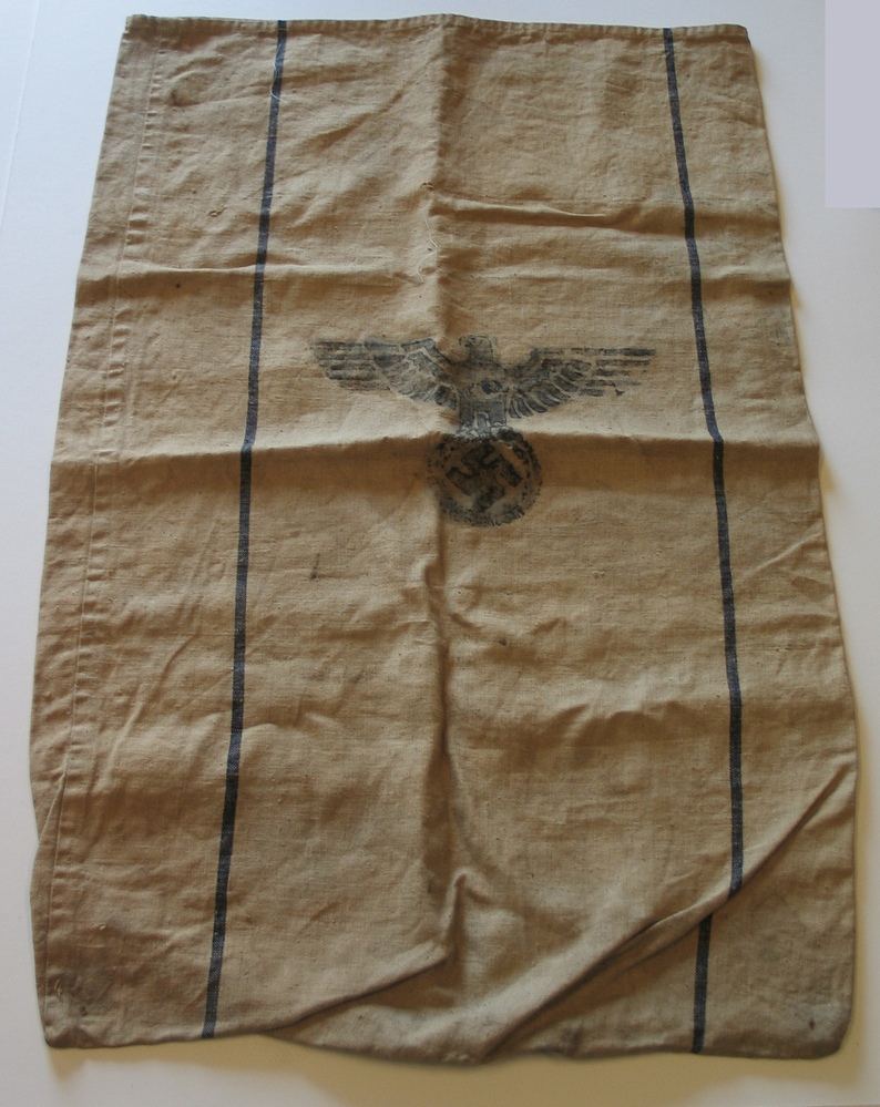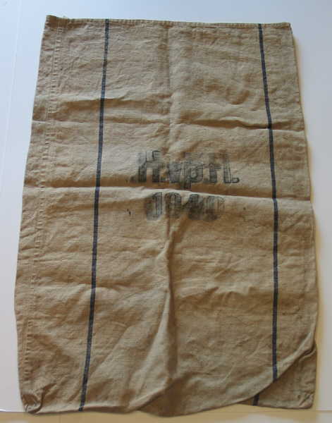 Postzak gemaakt van jute en voorzien van een stempel met daarin een afbeelding van een adelaar. Onder de adelaar is het naziteken afgebeeld. Aan de andere kant van de postzak is de tekst; .H. Vp.fl. 1940 gedrukt.