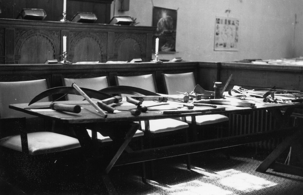 Foto, zwart/wit, Tentoonstelling in Martinuskerk door Historische werkgroep.