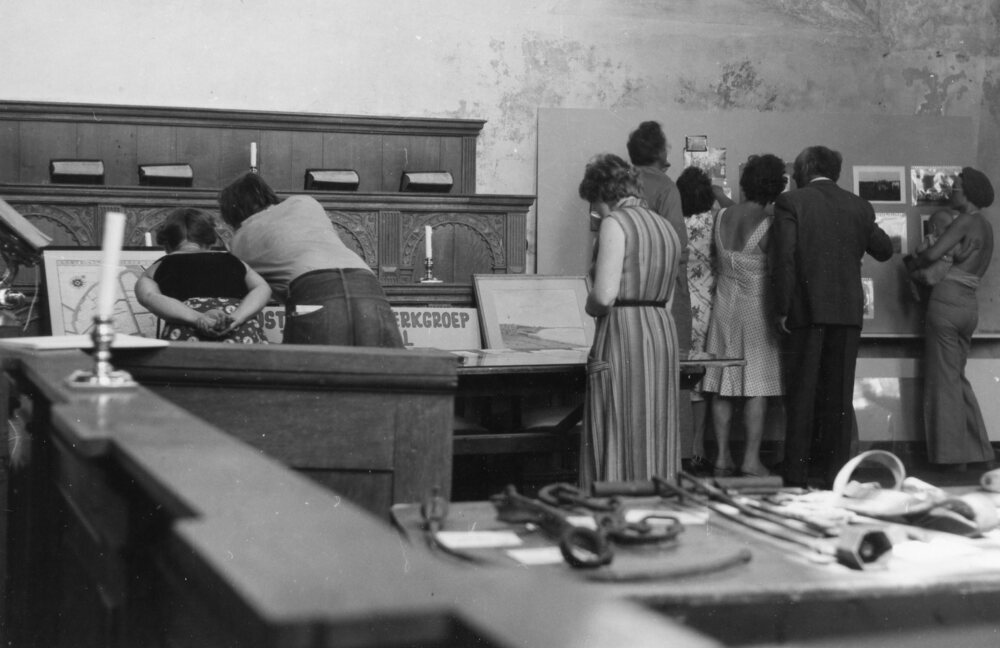 Foto, zwart/wit, Tentoonstelling in Martinuskerk door Historische werkgroep.