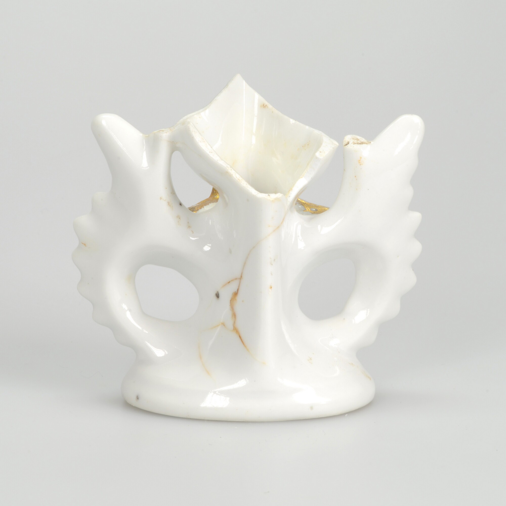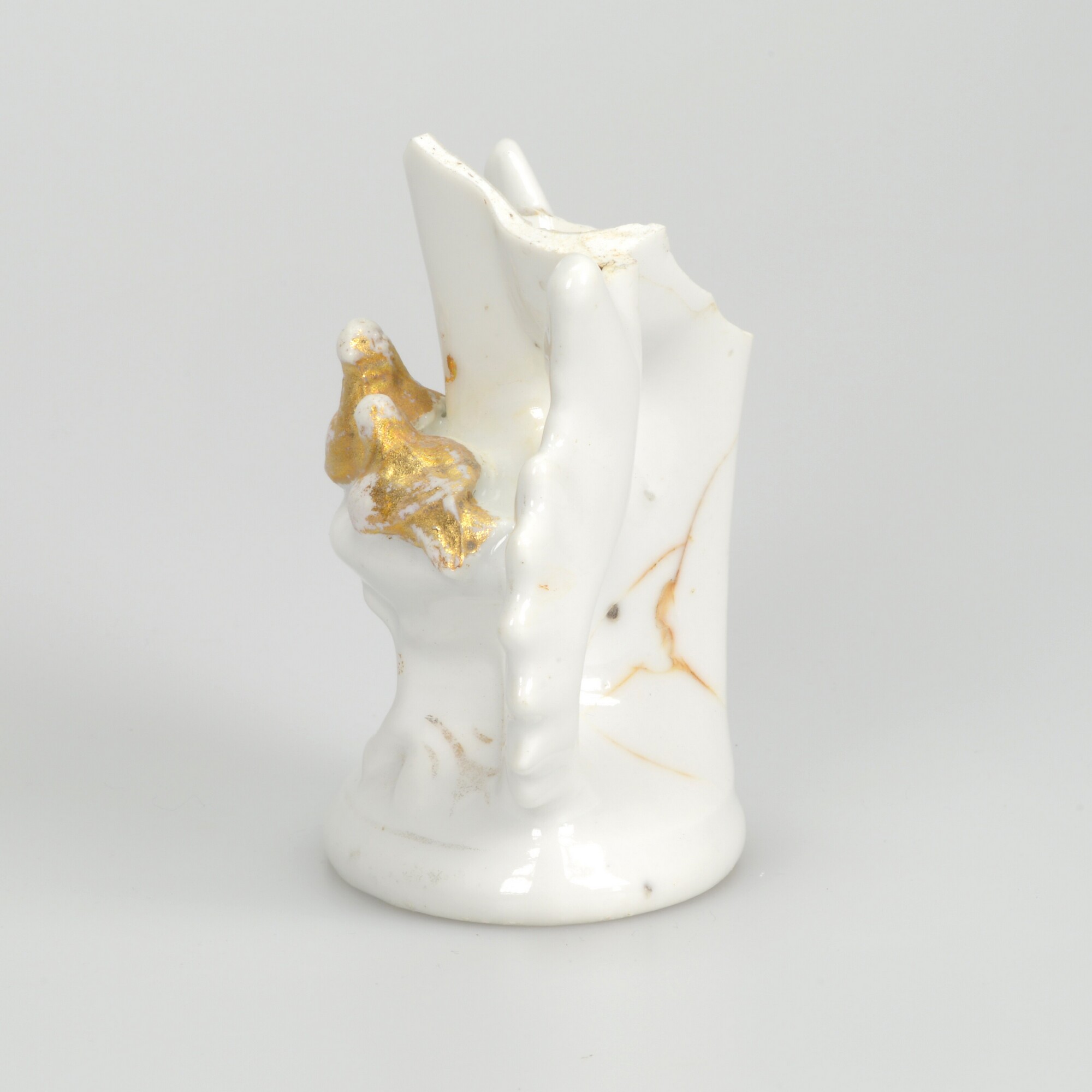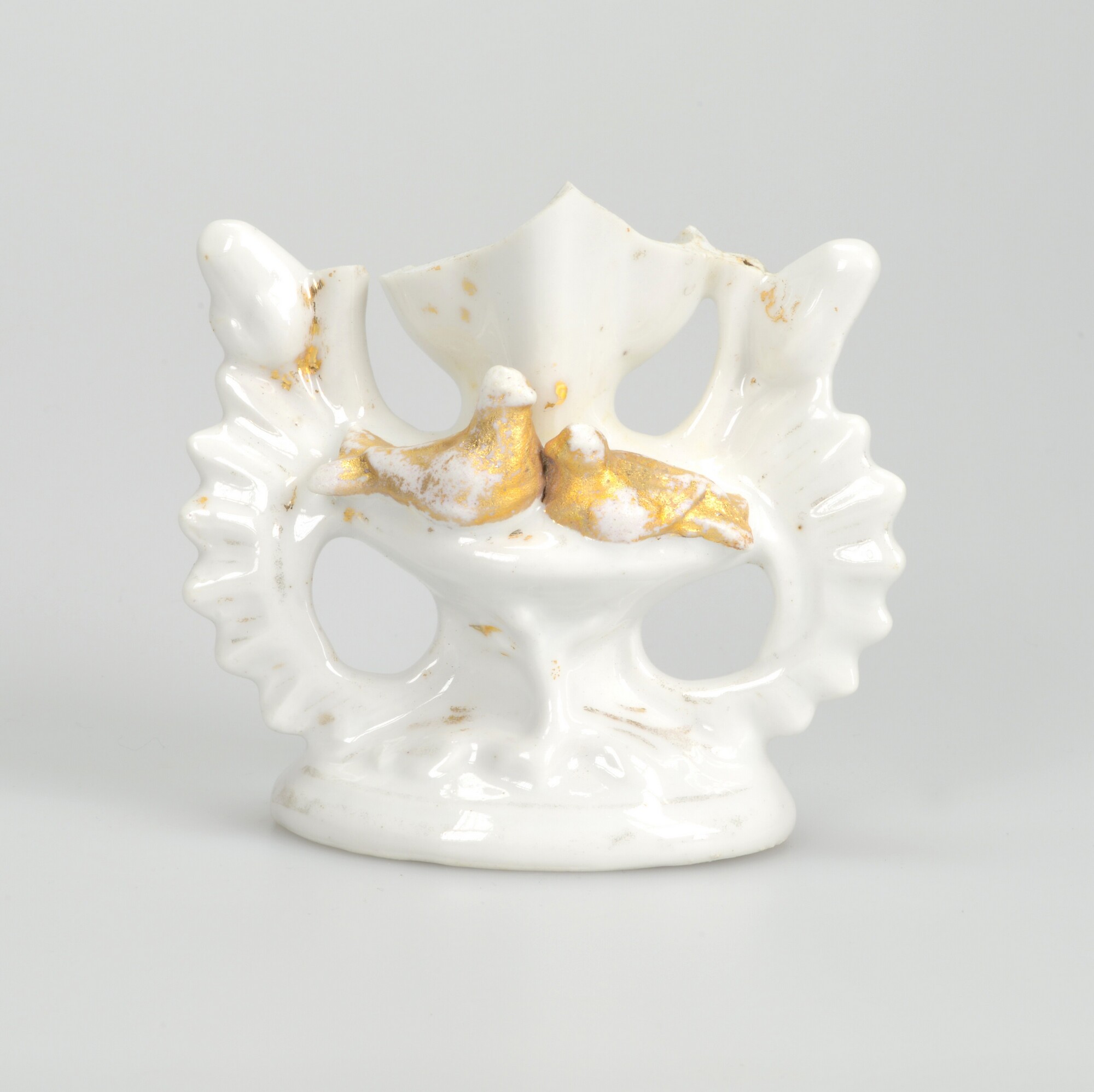 Bloemvaas; ep-vaa; Europees porselein; twee duiven; verguld; ovale standring