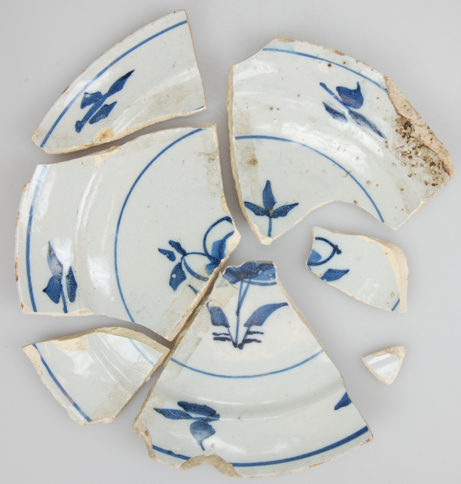 Bord; f-bor-3; faience; decor: floraal motief; fragment, compleet profiel; Delft